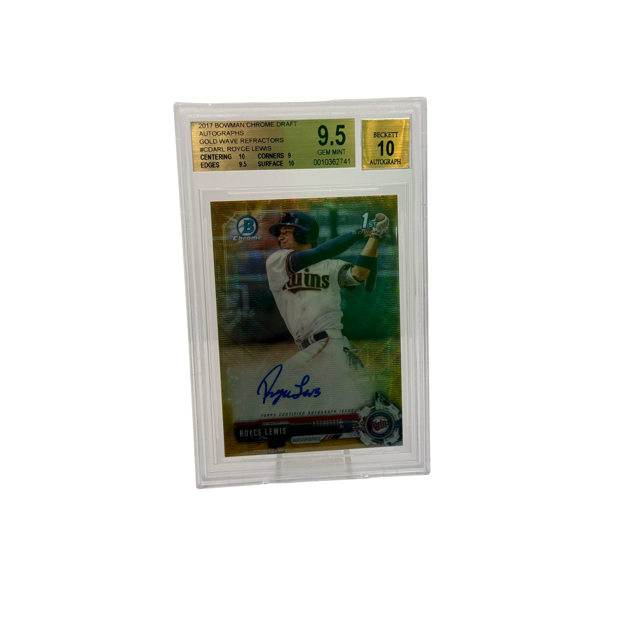 2017 bowman chrome draft auto gold wave royce lewis bgs 9.5/10 auto