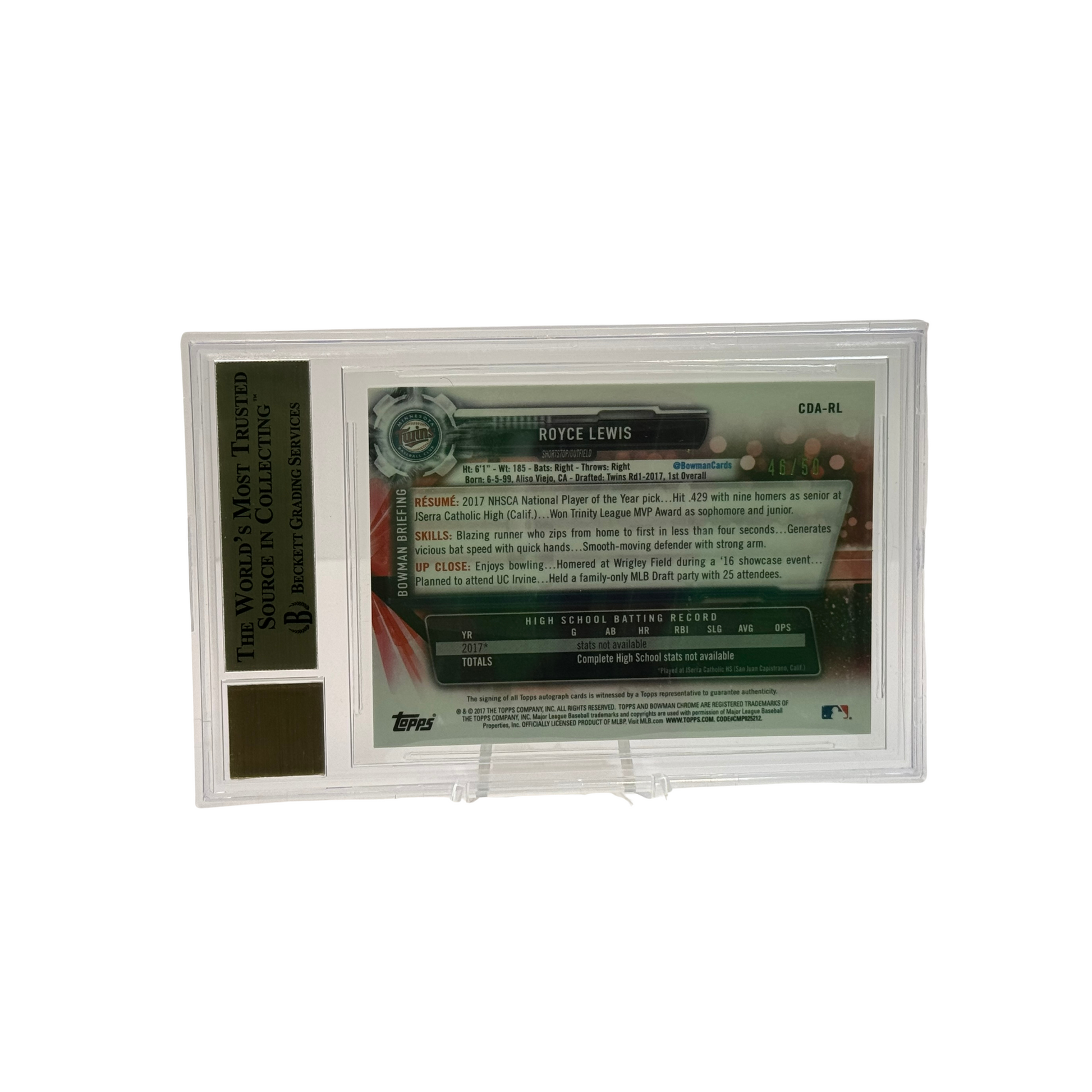 2017 Bowman Chrome Draft Auto Gold Wave Royce Lewis BGS 9.5/10 Auto