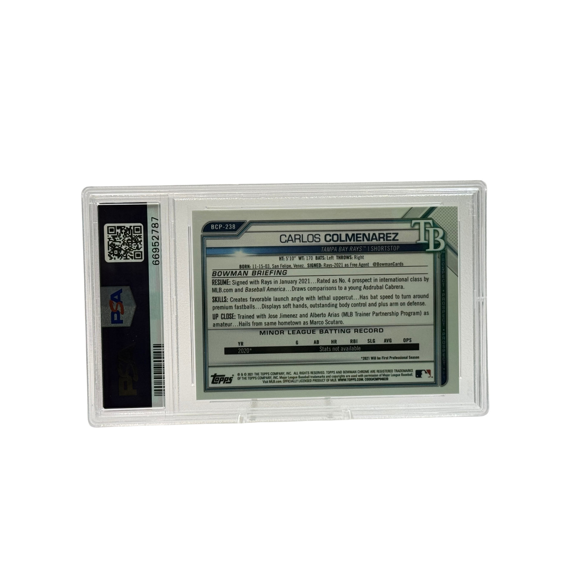 2021 Bowman Chrome Carlos Colmenarez MegaBox Green Refractor PSA 9
