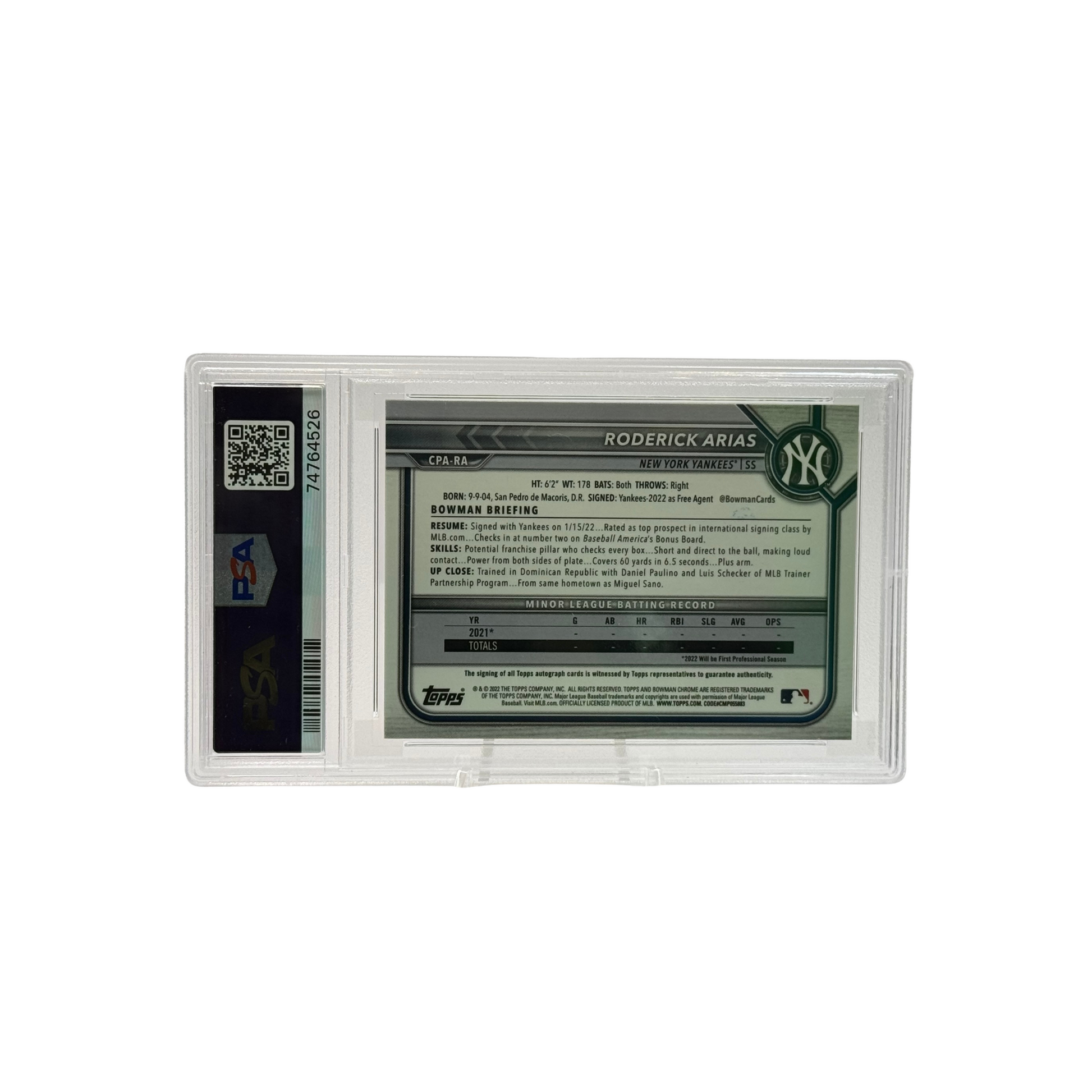 2022 Bowman Chrome Roderick Arias Orange Wave Refractor Auto PSA 10