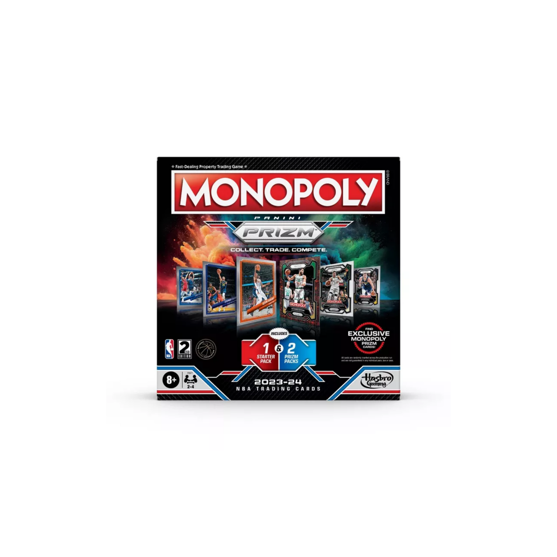 Collect, trade, and compete in the Monopoly Prizm: NBA Edition 2nd Edition board game—with 2023-24 Panini NBA trading cards! In this version of the Monopoly game, players use the Panini cards to draft their own team of 4 NBA players. Then, instead of buying Properties, they try to take control of NBA Games and collect points from opponents who land on them. To earn more points, players reveal and compare the stats on their Panini cards when they compete in Playmaker challenges and NBA Award contests. They can also use the Panini cards to trade NBA players or draft new ones. At the end of the game, the player with the most points wins! Looking for fun games for Family Game Night or cool gifts for kids or collectors? This strategy board game for kids and adults who love basketball is a slam dunk!